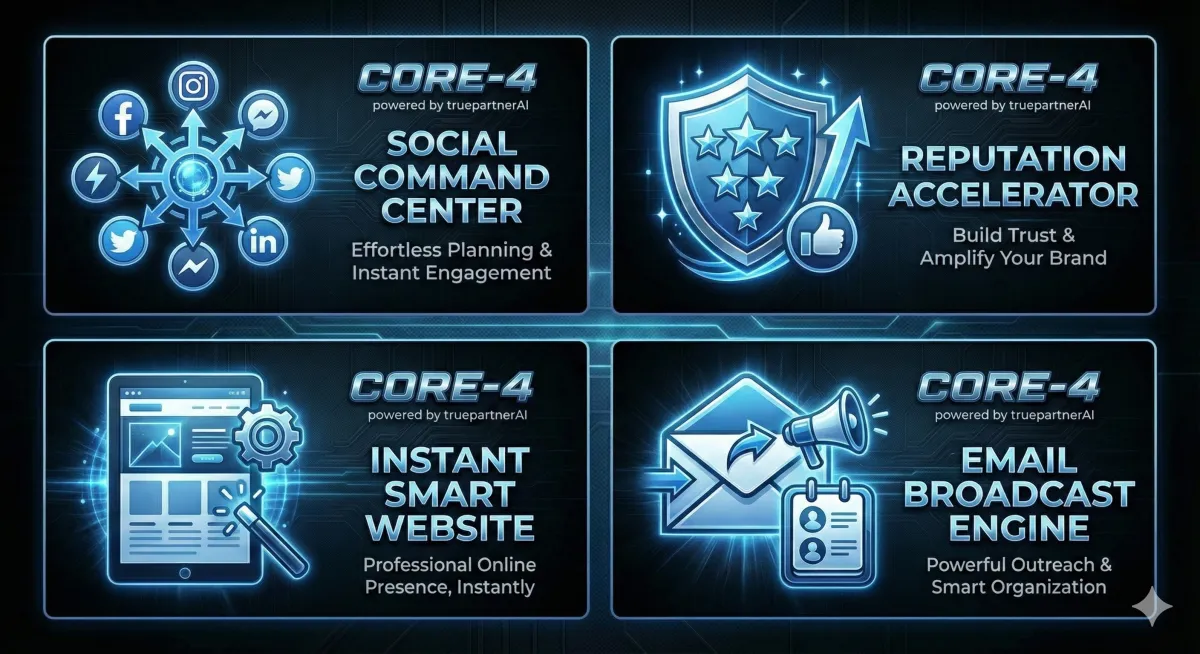 "I'd struggled with CRMs and marketing platforms for years. I just didn't have the time. But with the TruePartnerAI Core-4 I became a posting machine"
